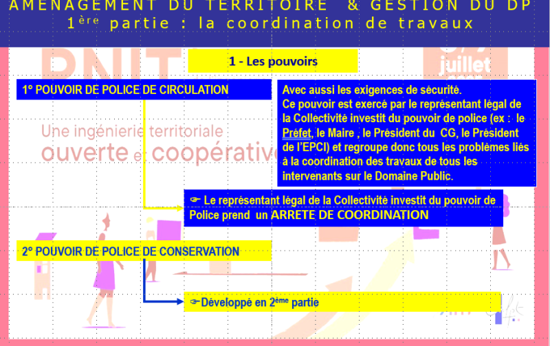 - Le Maire dispose de pouvoirs de police qui l’autorise à mettre en œuvre une procédure de coordination de travaux (à l’aide par exemple d’un arrêté général de coordination) et ainsi d’avoir connaissance de tous les projets de travaux.