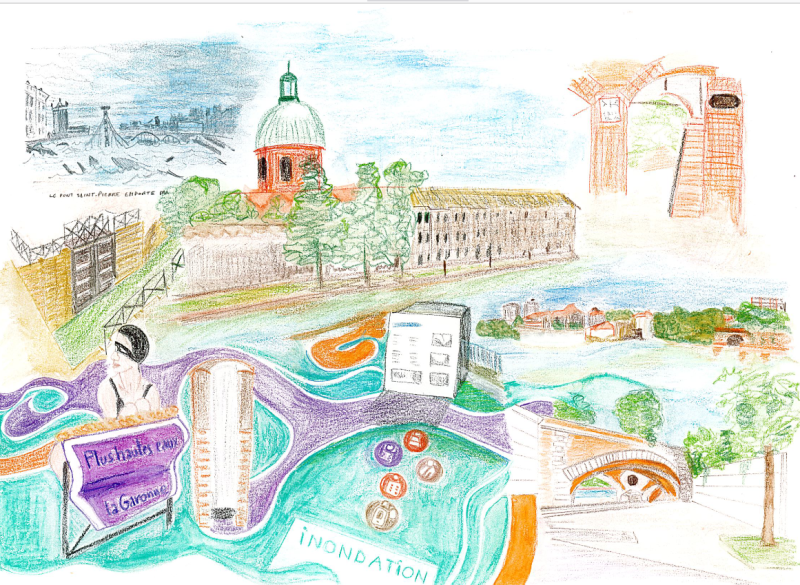 Balade apprenante de 2 heures du bord de la Garonne au cœur de la ville avec des points d'arrêts liés à la gestion des crues (échelle de crue, zone d'expansion, dispositifs de protection : digues, portes étanches, batardeaux, trappes pour les canalisations, repères de crues...), évolution de la ville et des activités en bord du fleuve, organisation de la mairie, gouvernance, informations préventives (actions de la Mairie et de la Métropole (PAPI)...